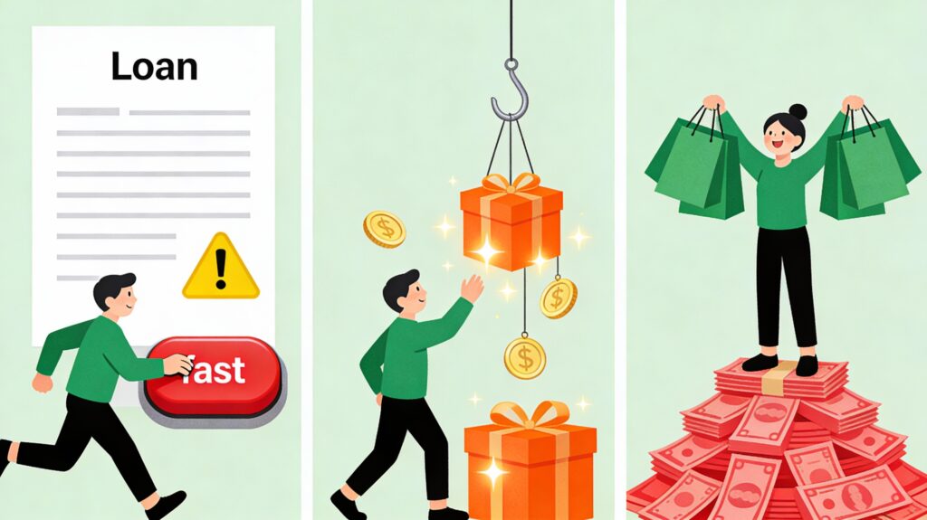 近年不少貸款廣告針對年輕人,包裝成「先使未來錢」、「即刻享受、慢慢還」,鼓勵用貸款買潮物、旅遊、升級生活。再加上網購、電子錢包、分期付款非常方便,很多人一不留神就「過度消費+過度借貸」。